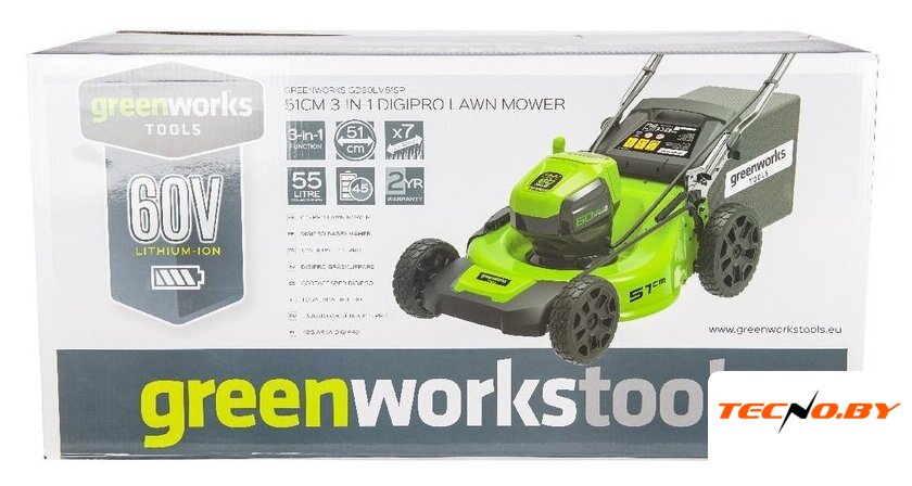| Комплектация | Газонокосилка самоходная аккумуляторная 60V GREENWORKS GD60LM51SP UB - 1 шт., Зарядное устройство 60V - 1 шт., Аккумулятор 4 А/ч 60V - 1 шт., Заглушка для мульчирования - 1 шт., Травосборник - мешок - 1 шт., Дефлектор бокового выброса травы - 1 шт., Руководство по эксплуатации, Упаковка |