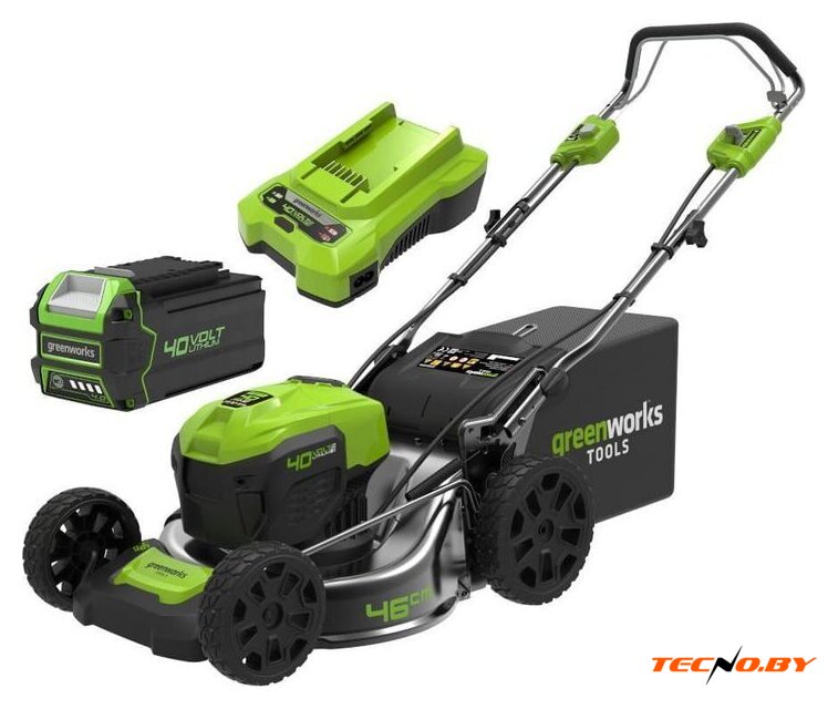 Газонокосилка Greenworks GD40LM46SPK4 — это надежный помощник для ухода за газонами до 600 м². Роторный механизм в сочетании с аккумуляторным двигателем делает ее идеальной для работы в саду без необходимости постоянного подключения к сети. Газонокосилка выполнена в стильном сочетании зеленого и черного цветов, что подчеркивает ее современный и эргономичный дизайн.