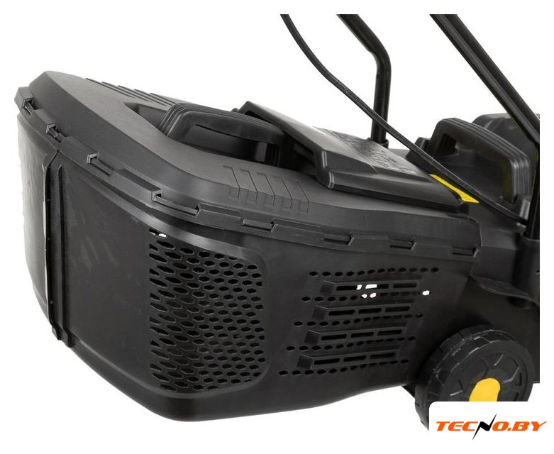 Этот инструмент оснащен мягким травосборником объемом 35 л, который надежно собирает скошенную траву, предотвращая ее разбрасывание по участку. Простота в снятии и очистке контейнера делает обслуживание газонокосилки легко и быстро.