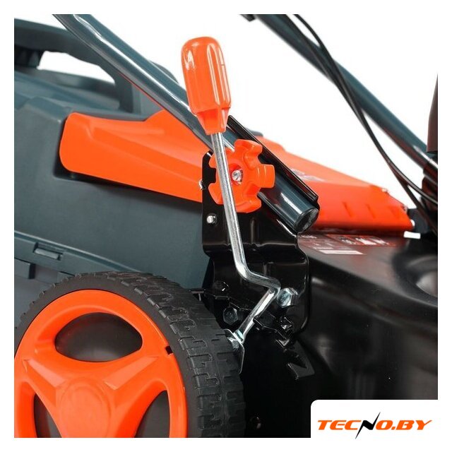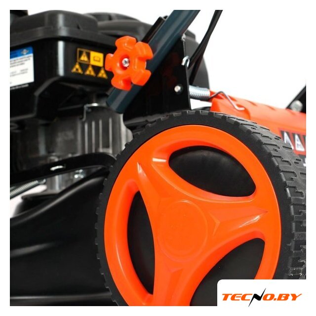 Дека выполнена из прочной стали, что обеспечивает долговечность и надежность конструкции. Газонокосилка снабжена четырьмя пластиковыми колесами, обеспечивающими отличную маневренность и простоту транспортировки. Элегантная комбинация оранжевого и черного цветов придает устройству современный и стильный внешний вид, делая его не только функциональным, но и привлекательным элементом в вашем садовом арсенале.