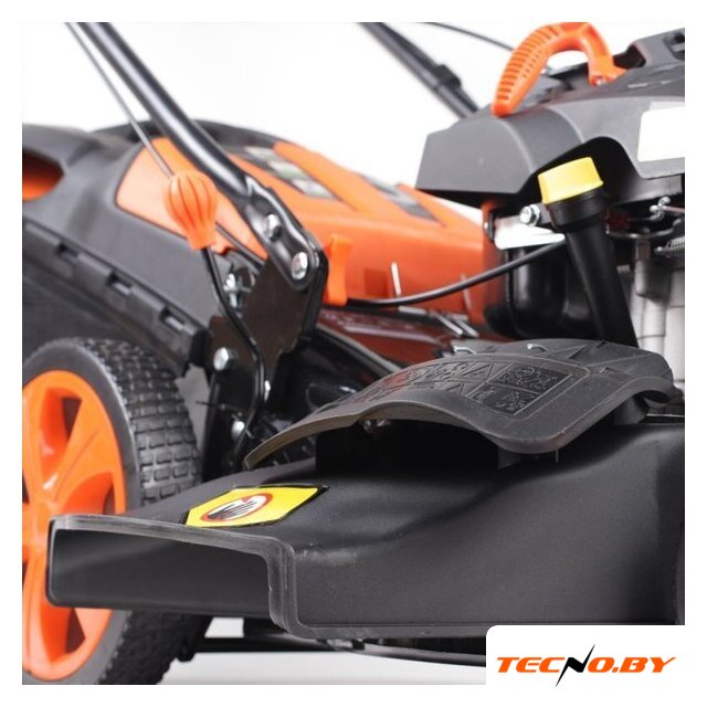 💪 Качественная стальная дека обеспечивает дополнительную устойчивость и долговечность конструкции, увеличивая срок службы газонокосилки. Газонокосилка оборудована четырьмя колесами с пластиковыми дисками, что делает ее маневренной и простой в обращении.