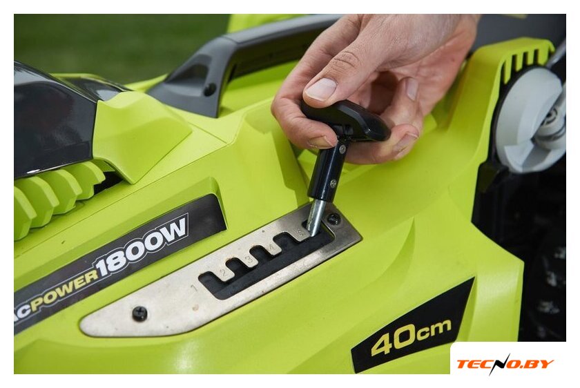 Газонокосилка Ryobi RLM18E40H оснащена мощным электрическим двигателем с мощностью 1800 Вт. Это обеспечивает быстрое и эффективное скашивание травы на вашем участке, экономя ваше время и силы. Больше никаких проблем с заправкой и обслуживанием двигателя, как у бензиновых моделей — просто включите в розетку и начинайте работу!