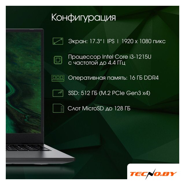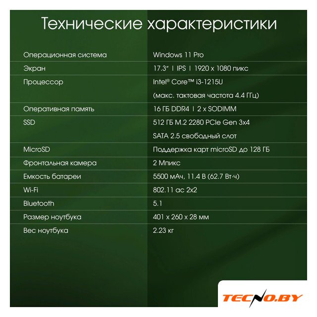 17.3" 1920 x 1080, IPS, 60 Гц, Intel Core i3 1315U, 8 ГБ DDR4, SSD 512 ГБ, видеокарта встроенная, без ОС, цвет крышки синий, аккумулятор 50 Вт·ч