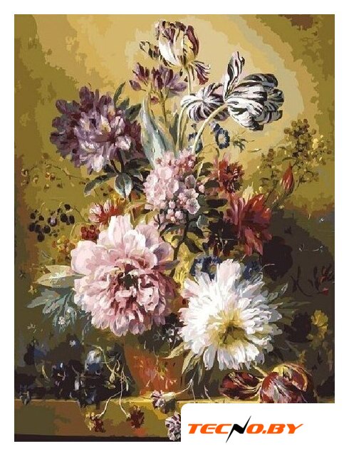 тематика натюрморт, 34 цветов в наборе, очень сложный уровень, холст на подрамнике, бежевый/коричневый/черный, 30 x 40 см