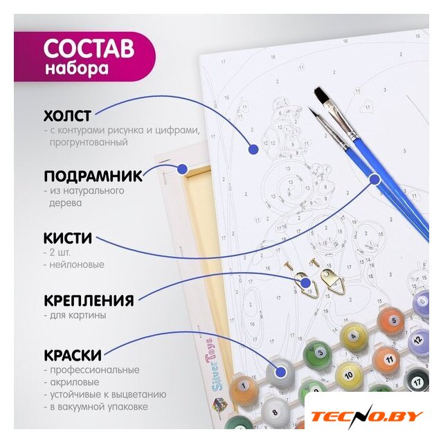 | Комплектация | холст, крепление, краски, кисти (2 шт.) |