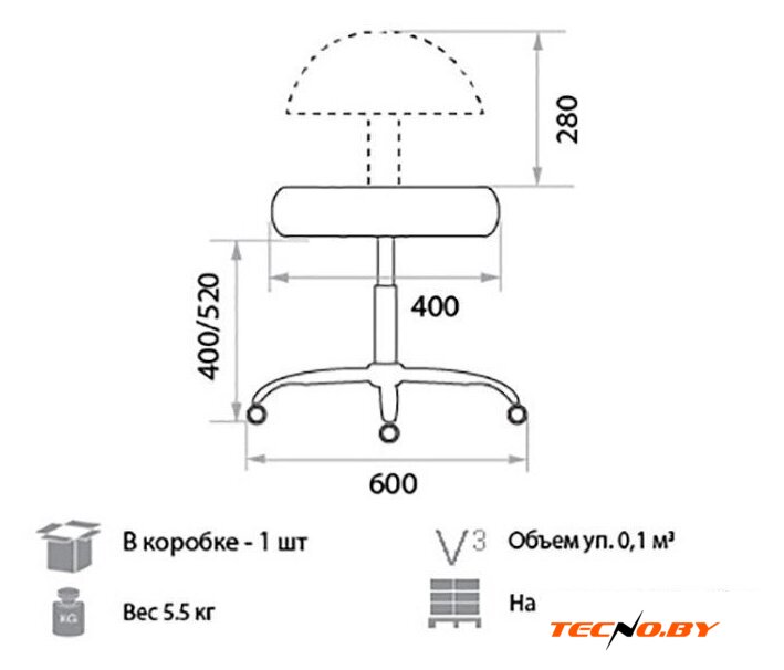офисное кресло, спинка цельная, максимальная нагрузка 100 кг