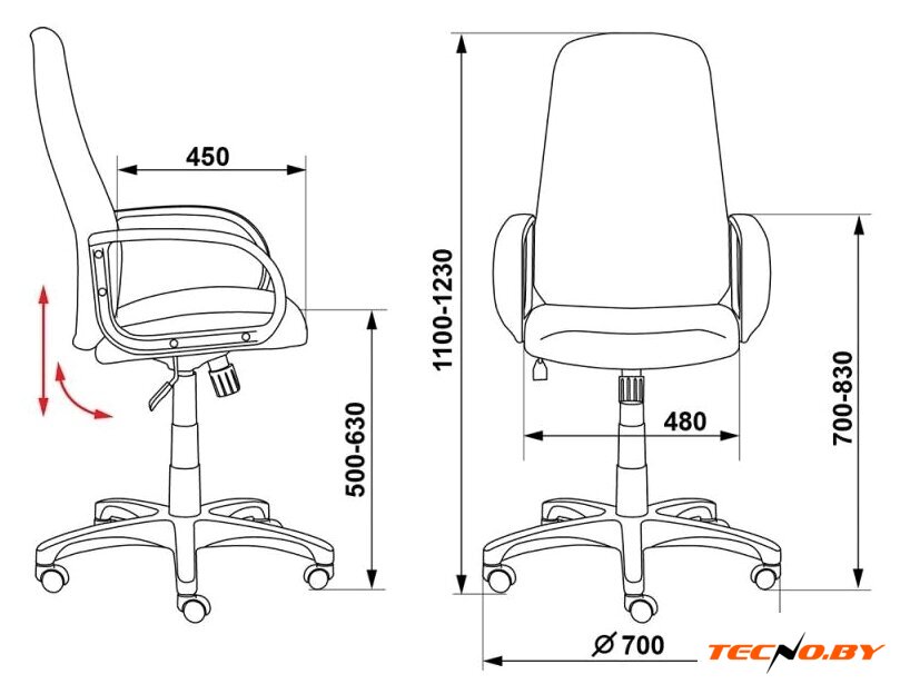 для руководителя, спинка цельная, обивка: искусственная кожа, механизм DMS (Топ-Ган, Tilt), максимальная нагрузка 120 кг, ширина 70 см