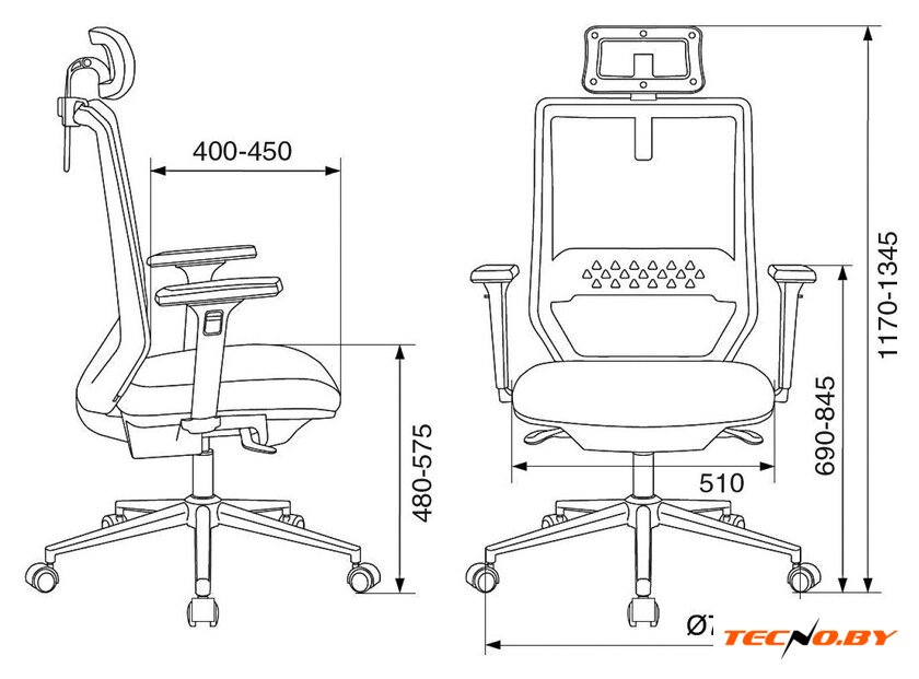 для персонала, механизм DMS (Топ-Ган, Tilt), максимальная нагрузка 120 кг