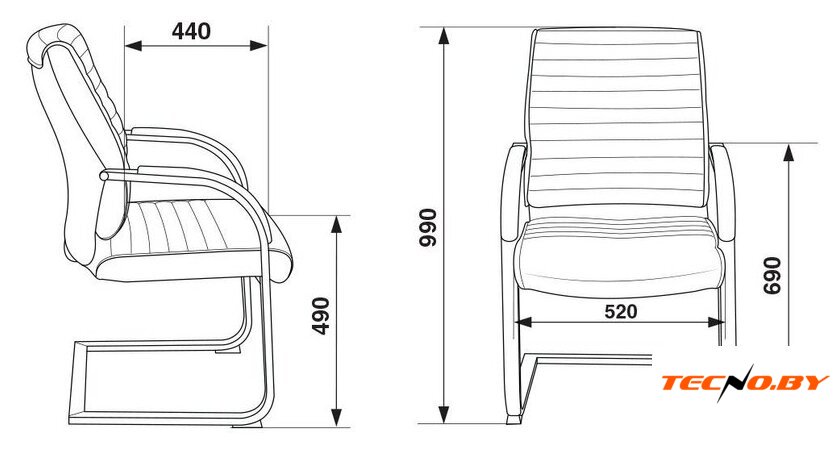офисный стул, спинка цельная, обивка: искусственная кожа, максимальная нагрузка 120 кг, ширина кресла 54 см
