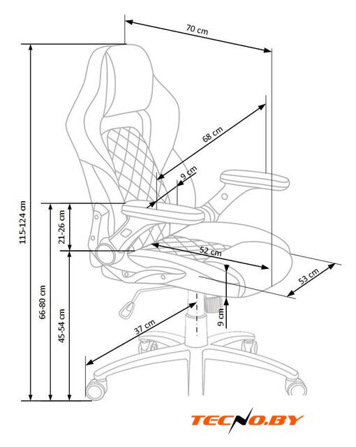 игровое (геймерское), спинка цельная, обивка: ткань, механизм DMS (Топ-Ган, Tilt), максимальная нагрузка 120 кг, ширина кресла 65.5 см