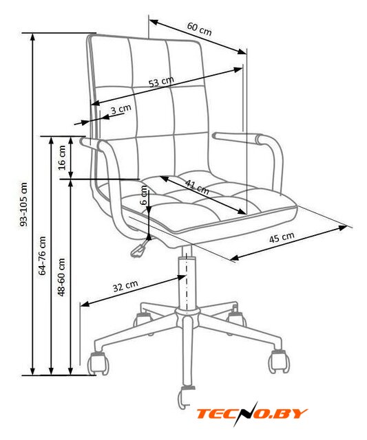 офисное кресло, механизм DMS (Топ-Ган, Tilt), ширина кресла 59 см