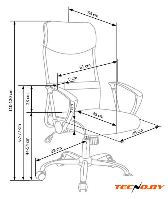 офисное кресло, спинка цельная, обивка: искусственная кожа, механизм DMS (Топ-Ган, Tilt), максимальная нагрузка 120 кг, ширина кресла 54 см
