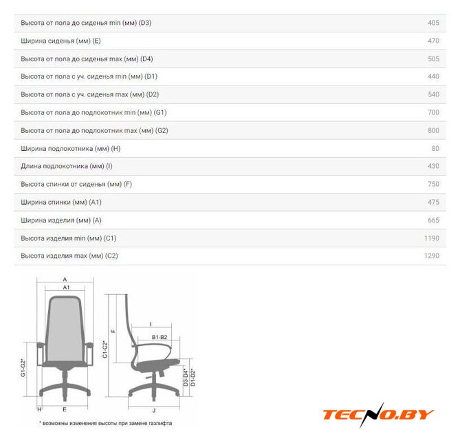 | Высота кресла | 119 — 129 см |