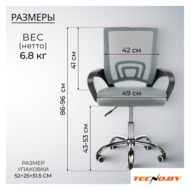 офисное кресло, спинка сетка, обивка: ткань/полимер/пластик, ширина кресла 43 см