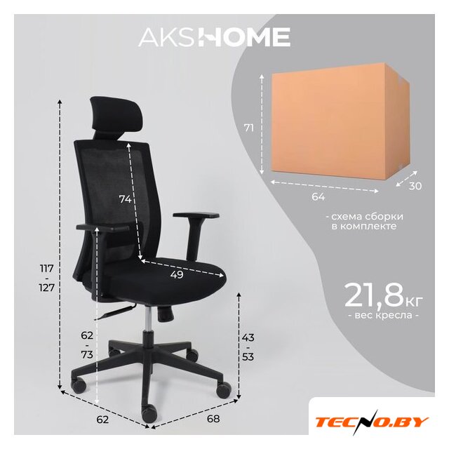 офисное кресло, спинка сетка, максимальная нагрузка 120 кг, ширина кресла 68 см