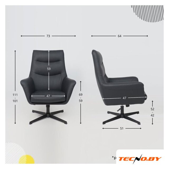 офисное кресло, спинка цельная, обивка: искусственная кожа, механизм синхромеханизм, максимальная нагрузка 100 кг, ширина кресла 61 см