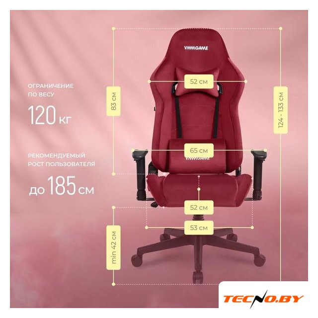 игровое (геймерское) кресло, максимальная нагрузка 150 кг, ширина кресла 69 см