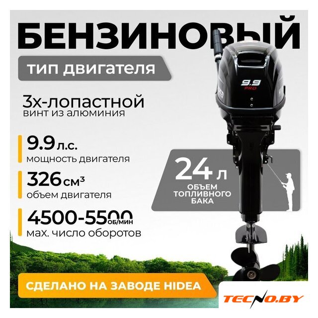 бензиновый 2-тактный, 7300 Вт, 9.9 л.с., 246 см³, бак 24 л, пуск: ручной, высота транца: 447 мм