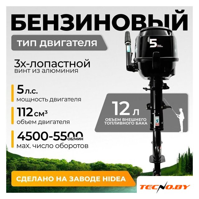 бензиновый 4-тактный, 3600 Вт, 5 л.с., 112 см³, бак 1.3 л, пуск: ручной, высота транца: 381 мм