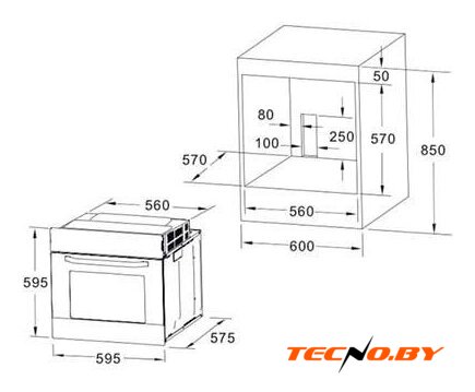 электрический с конвекцией, объем 60 л, 8 режимов, очистка ручная, проволочные направляющие, энергопотребление A