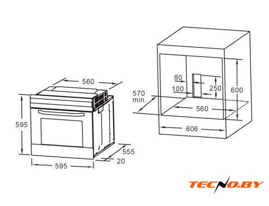 В комплекте поставляется стандартный и глубокий противни, а также решетка, все они эмалированные, что упрощает их чистку. Размеры самого духового шкафа составляют 59,5 см в ширину, 57,5 см в глубину и 59,5 см в высоту, с весом 35 кг, что делает его компактным и подходящим для любого кухонного интерьера. Для установки требуется ниша с размерами 60 см в высоту и 60,6 см в ширину.