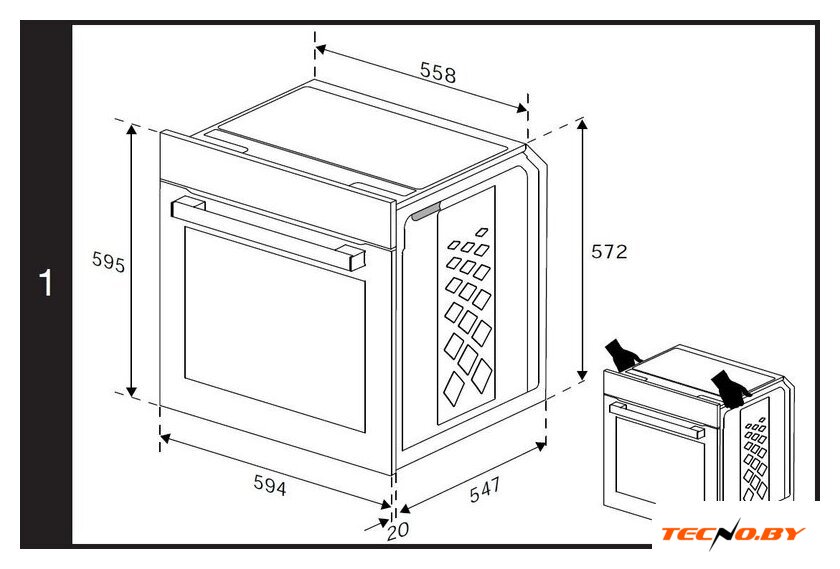 В комплект шкафа входят стандартный и глубокий эмалированный противни, а также решётка. Параметры устройства — ширина 59.4 см, глубина 56.7 см и высота 59.5 см — предназначены для удобной встроенной установки. Вес устройства составляет 36.1 кг, что свидетельствует о высоком качестве использованных материалов.