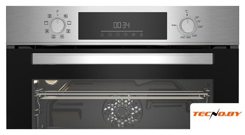 Современная электронная система управления с ярким светодиодным экраном позволяет контролировать все аспекты работы духового шкафа. Функции таймера с отключением программы и отложенного старта, а также звуковой сигнал уведомят вас о готовности блюд. Для дополнительной безопасности предусмотрена блокировка от детей. Работайте с термостатом для достижения идеальных результатов и наслаждайтесь освещением духового отделения.