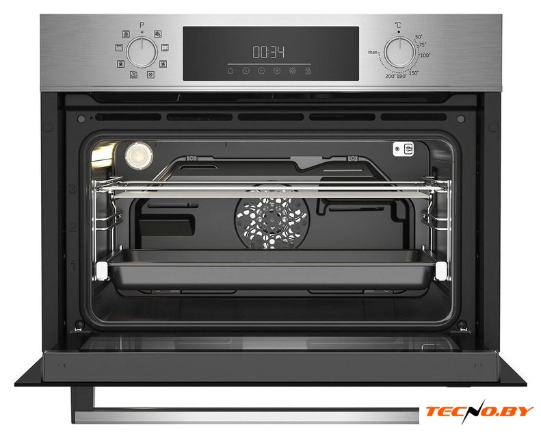 Духовой шкаф комплектуется стандартным эмалированным противнем и решеткой для приготовления разнообразных блюд. Хотя в модели отсутствует термощуп и приготовление на пару, функции конвекции и различные режимы нагрева компенсируют это, позволяя готовить на высшем уровне.