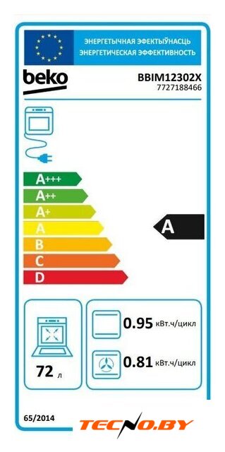 электрический с конвекцией, объем 60 л, 8 режимов, очистка ручная, проволочные направляющие, энергопотребление A