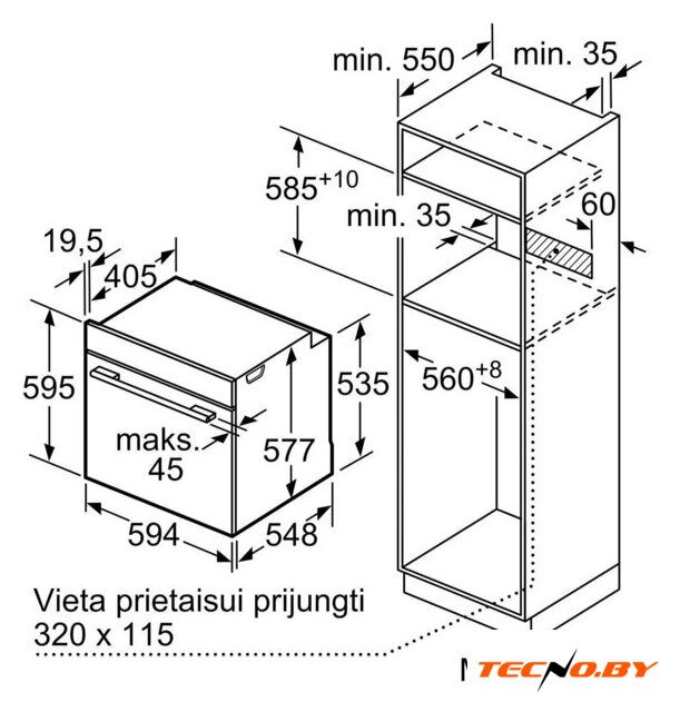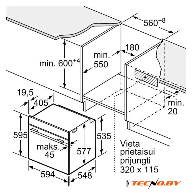 Размеры духового шкафа (59.4 см в ширину, 56.7 см в глубину и 59.5 см в высоту) идеально подходят для встраивания в стандартные кухонные ниши. Вес модели составляет 38.1 кг, что делает его достаточно легким для установки. В комплектацию входят стандартный эмалированный противень и решетка, обеспечивая все необходимое для начала кулинарных экспериментов сразу после установки.