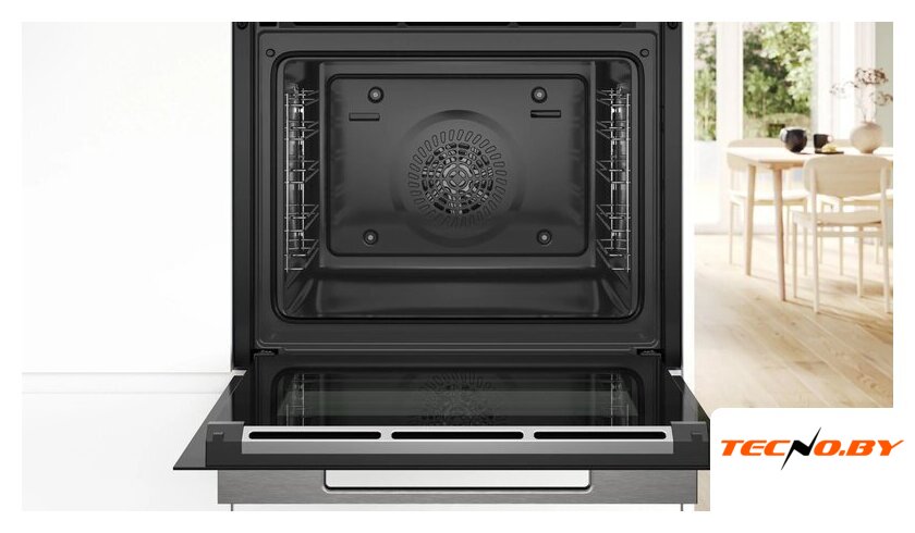 Bosch Serie 8 предлагает 11 различных режимов работы, включая электрический гриль, двухсторонний нагрев и функцию гриль + конвекция. Возможность вентиляционного нагрева и размораживания обеспечивают оптимальные условия для приготовления разнообразных блюд. Максимальная температура до 300 °C позволяет экспериментировать с новыми рецептами и достигать идеальных результатов.