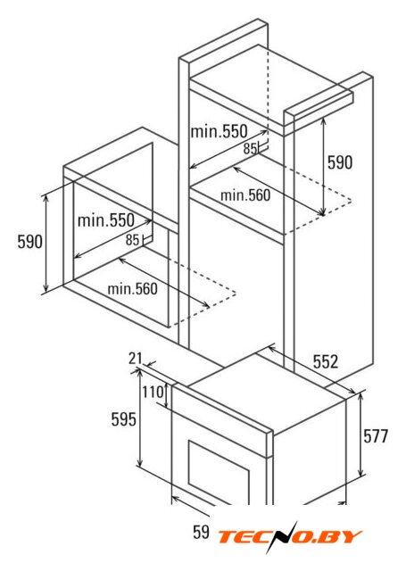 В комплекте с духовкой вы получите эмалированные глубокий и стандартный противни и решетку для различных нужд. Габариты устройства составляют: ширина 59.5 см, глубина 56.8 см, высота 59.5 см, что делает его идеальным для встраивания в нишу размером 59 см в высоту, 56 см в ширину и 55 см в глубину. С весом в 36 кг, он станет стабильным дополнением вашей кухни.