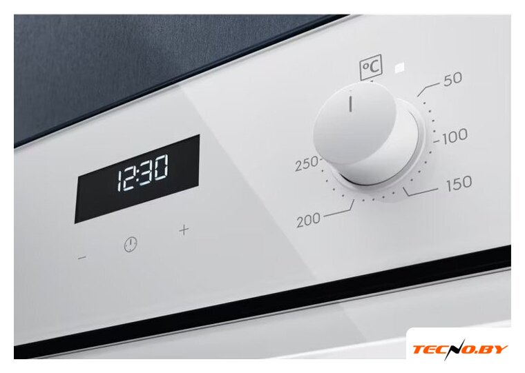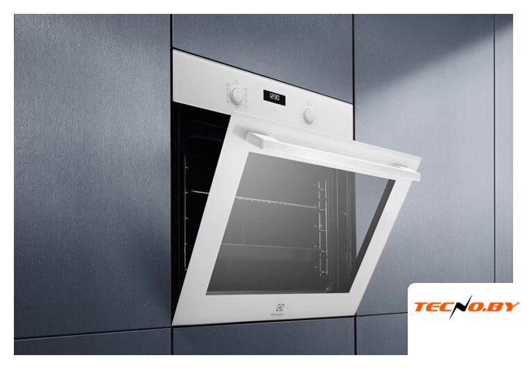 Electrolux EOF5F50BV оборудован светодиодным экраном, который облегчает навигацию и контроль всех настроек. Управление производится через электронную панель, что позволяет точно задать температуру с помощью термостата. Также доступен полезный таймер и звуковой сигнал, который уведомит вас о готовности блюда, а встроенное освещение даёт возможность контролировать процесс приготовления.