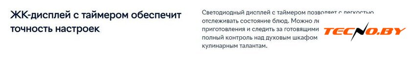 Управление духовым шкафом осуществляется через интуитивно понятный электронный интерфейс со светодиодным экраном. Встроенные функции, такие как таймер и звуковой сигнал, обеспечивают удобство использования. Также шкаф оснащен термостатом и внутренним освещением, что делает приготовление блюд более комфортным и точным. ⚙️