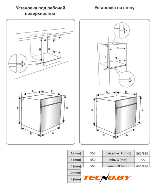 электрический с конвекцией, объем 55 л, 5 режимов, очистка ручная, проволочные направляющие, телескопические направляющие, энергопотребление A