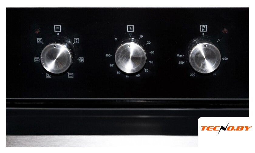 Откидная дверца шкафа с тремя стеклами обеспечивает надежную защиту от перегрева. Хотя духовой шкаф не оснащен плавным закрыванием дверцы, он имеет встроенное освещение, что обеспечивает полный контроль за процессом приготовления. Вентиляционный нагрев и наличие термостата гарантируют точное поддержание температуры до 250°C.