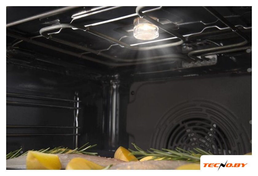 Максимальная температура этого духового шкафа достигает 300 °C, что позволяет воплощать самые смелые кулинарные задумки. Наличие термостата и системы плавного закрывания дверцы с двумя стеклами и термослоем обеспечивают безопасность и равномерность нагрева, что позволяет достичь идеальных результатов при каждом приготовлении. Освещение внутри камеры дает возможность контролировать процесс приготовления без необходимости открывать дверцу.