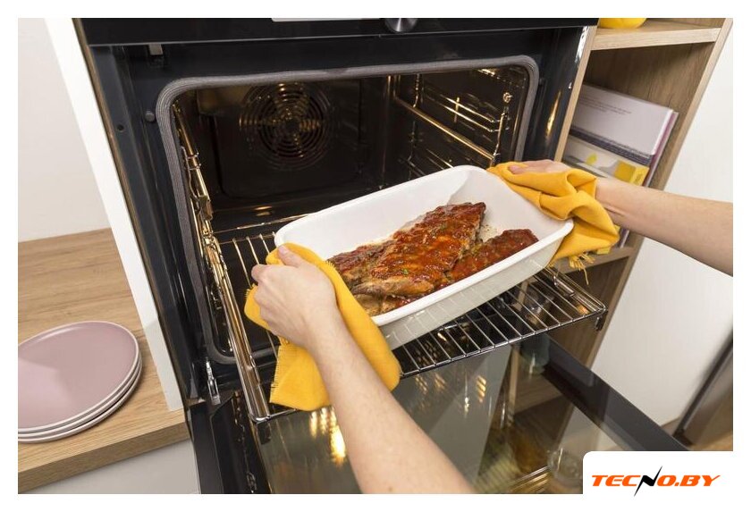 Ширина, глубина и высота духового шкафа составляют 59.5 см, 56.4 см и 59.5 см соответственно, что делает его удобным для встраивания в большинство современных кухонь. В комплекте с духовкой идет эмалированный глубокий противень и решетка, что расширяет ваши возможности для кулинарных экспериментов.