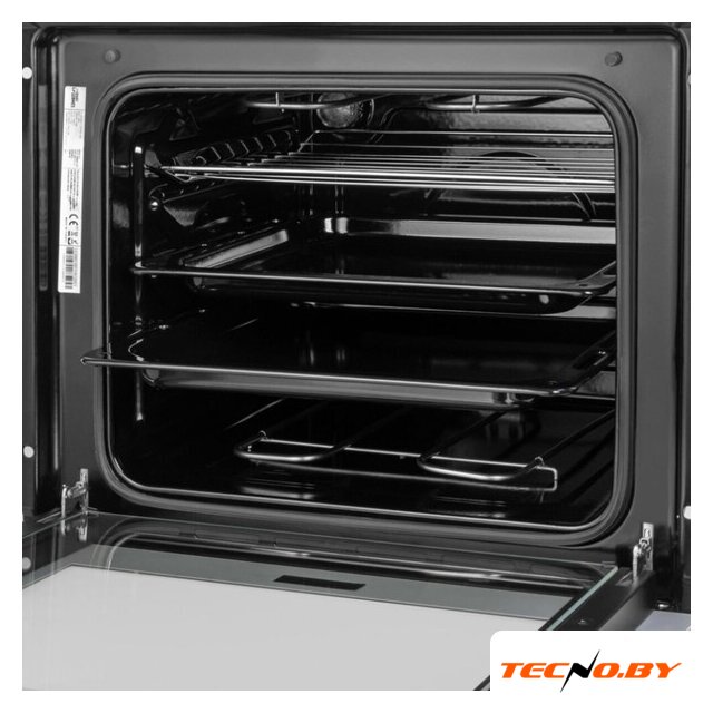 Внутреннее устройство шкафа обеспечивает удобство в использовании. Духовка оснащена откидной дверцей с двумя стеклами, что гарантирует безопасность и удержание тепла. Рельефные направляющие делают загрузку и выгрузку противней легкой и безопасной. Максимальная температура готовки составляет внушительные 250 °C.