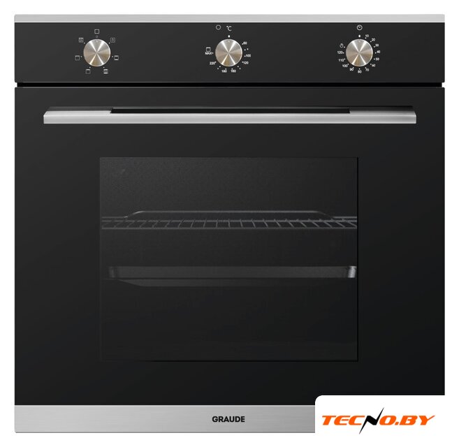 Комфорт и простота использования — главные черты управления духовым шкафом Graude. Он оснащен механическим управлением и удобным механическим таймером. Звуковой сигнал уведомляет о завершении приготовления, делая процесс готовки еще более комфортным. Для безопасности предусмотрено двойное стекло дверцы духовки, что минимизирует риск ожогов при использовании.