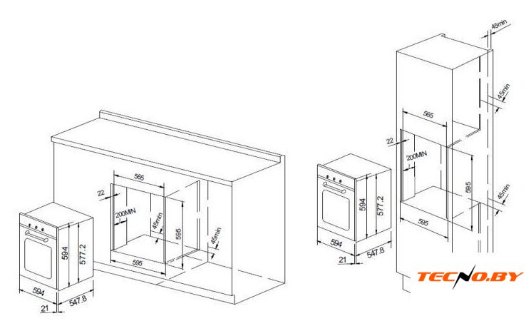 электрический с конвекцией, объем 45 л, 3 режима, очистка ручная, 2 стекла в дверце, направляющие проволочные