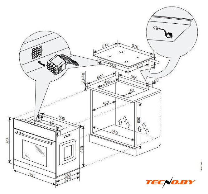 электрический статический, объем 60 л, утапливаемые переключатели, 3 режима, очистка паровая, направляющие проволочные
