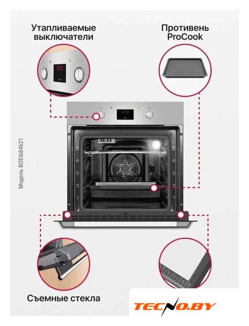электрический с конвекцией, объем 68 л, 7 режимов, очистка ручная, 3 стекла в дверце, направляющие проволочные