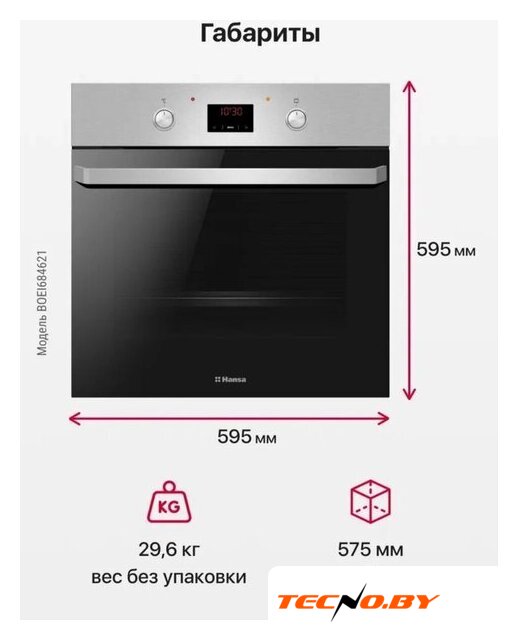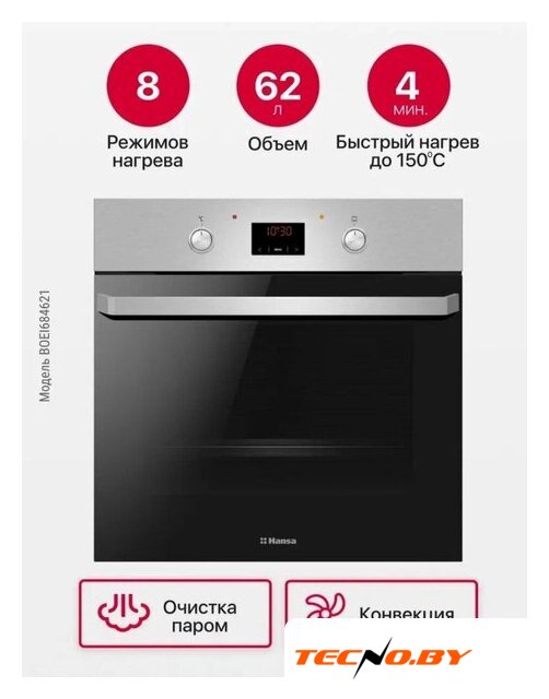 электрический с конвекцией, объем 78 л, утапливаемые переключатели, 6 режимов, очистка ручная, 2 стекла в дверце, направляющие проволочные