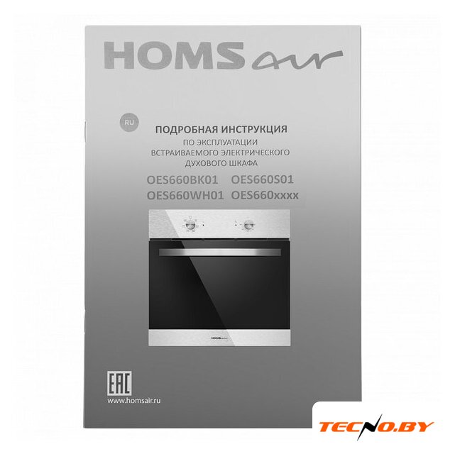HOMSair OES660S01 представляет собой классический духовой шкаф с объёмом 59 литров, предоставляя достаточную вместимость для приготовления всевозможных блюд. Управление духовым шкафом осуществляется с помощью удобных механических регуляторов. В духовке отсутствует индикация и автоматические программы приготовления, однако в вашем распоряжении пять режимов работы, включая нижний нагрев, двухсторонний нагрев, большой гриль и эко-режим, что позволяет гибко подходить к процессу приготовления пищи.