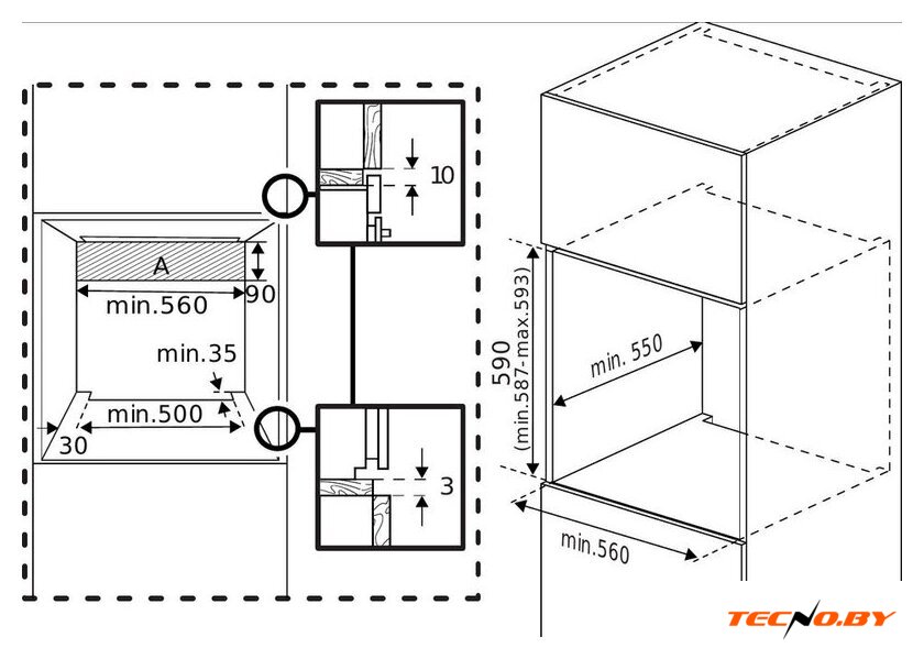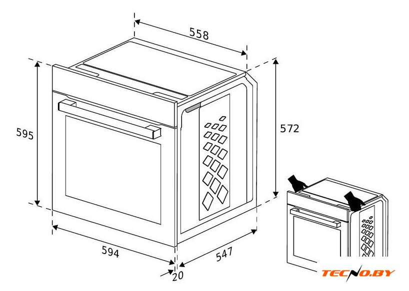электрический с конвекцией, объем 71 л, утапливаемые переключатели, 9 режимов, очистка ручная, 2 стекла в дверце, направляющие проволочные + телескопические