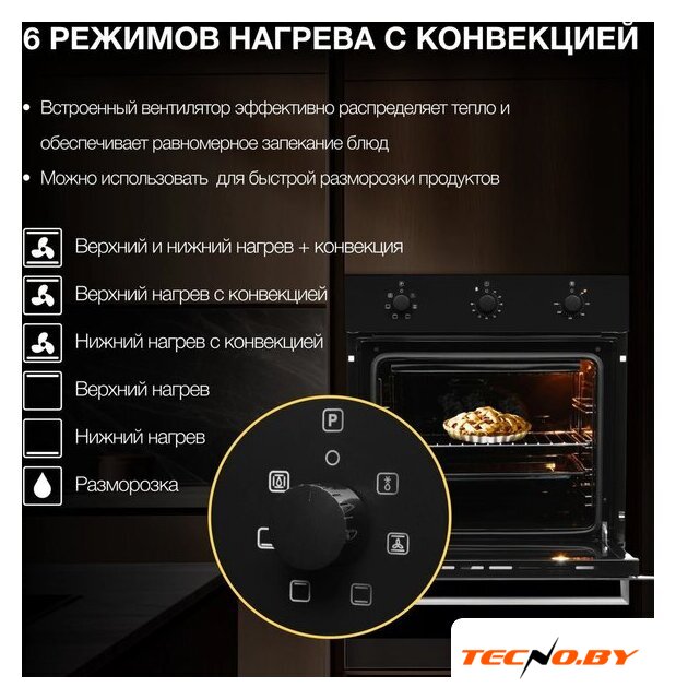 электрический с конвекцией, объем 50 л, 8 режимов, очистка ручная, энергопотребление A