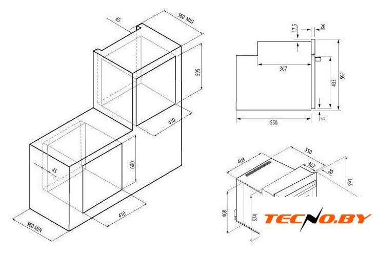 электрический статический, объем 60 л, утапливаемые переключатели, 3 режима, очистка паровая, направляющие проволочные