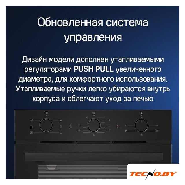 электрический с конвекцией, объем 53 л, утапливаемые переключатели, 6 режимов, очистка паровая, направляющие проволочные + телескопические (1 уровень)