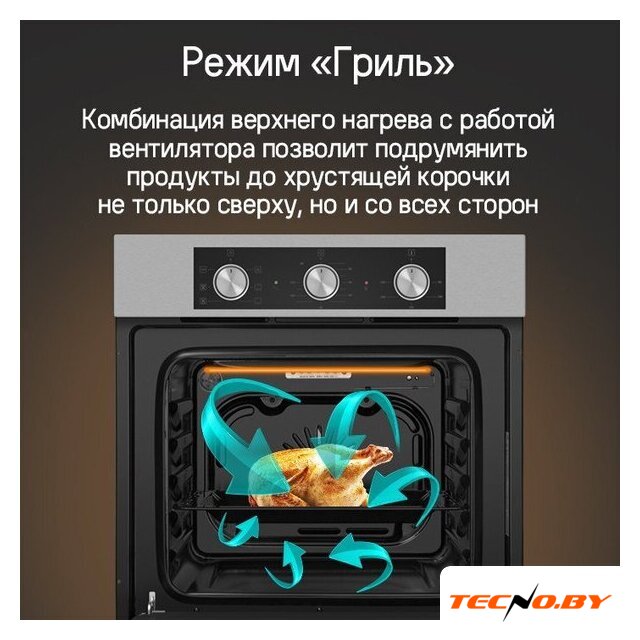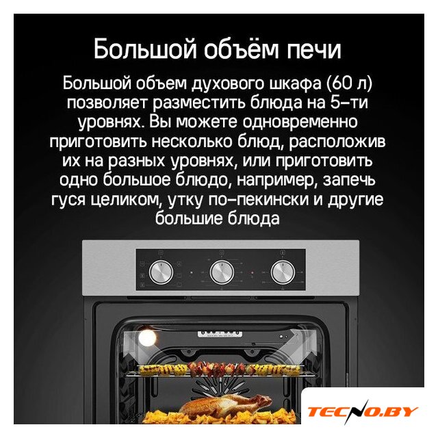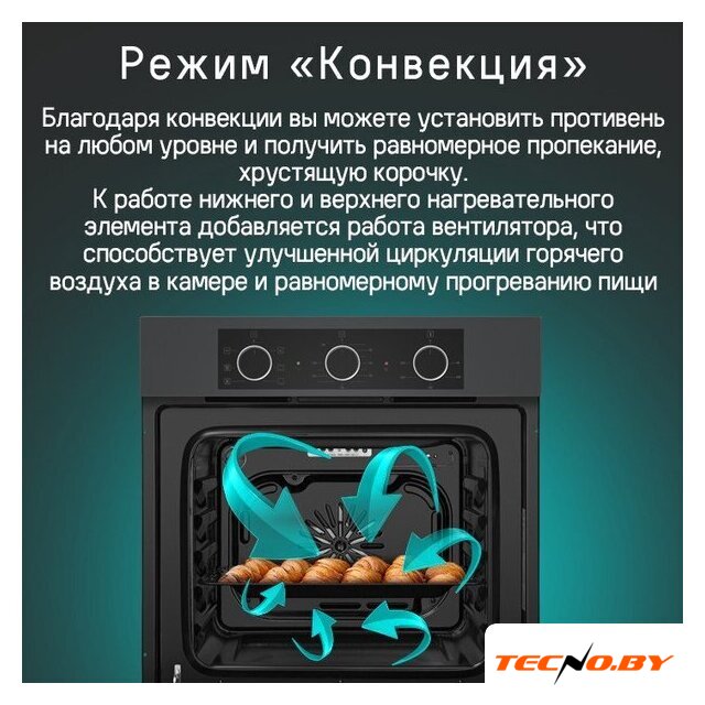 электрический с конвекцией, объем 51 л, 6 режимов, очистка ручная, 2 стекла в дверце, направляющие проволочные